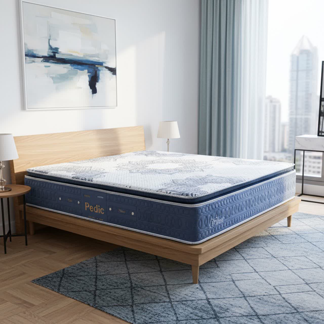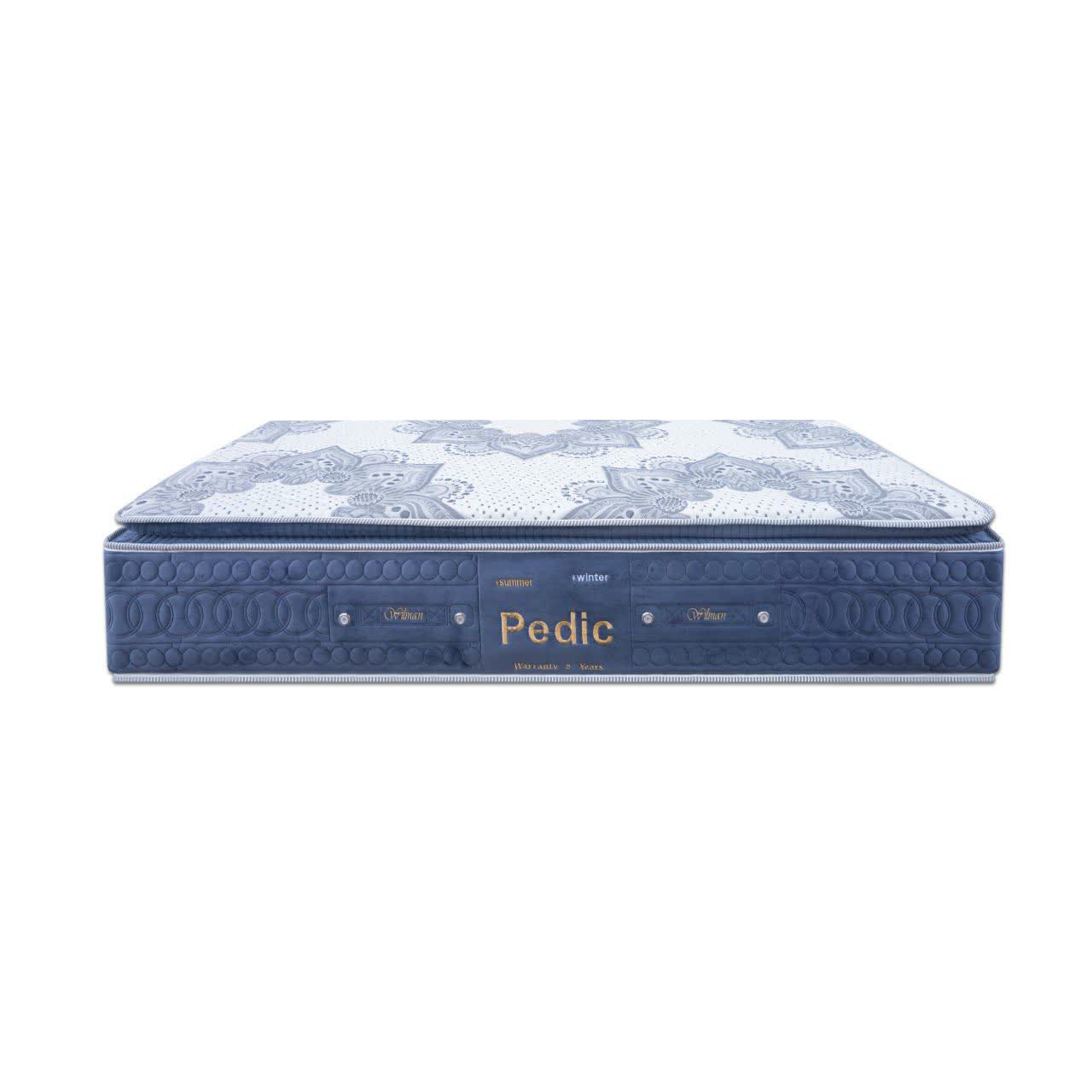 تشک طبی فنری Pedic برند ویلمن دارای سیستم فنربندی متصل میکرو فشرده با شیوه نوین برای دوام طول عمر بیشتر که خاصیت طبی فنری بودن آن را دوچندان کرده است ،دیواره تشک دارای اسکلت M از فشار اضافه بر روی تشک جلو گیری میکند همچنین محصول فوق دارای سیستم تهویه هوا میباشد که از فرسودگی متریال داخلی جلوگیری میکند، دارای نماد winter ,summer بوده که از یک طرف در تابستان و از طرف دیگر در زمستان استفاده میشود .تشک پدیک با استفاده از متریال با کیفیت و طراحی مدرن که شامل پد متصل میباشد که باعث میشود خواب با کیفیت و بینظیری را تجربه کنید،در دوطرف تشک اسفنج با دانسیته 40کیلویی به قطر 12 سانتیمتر ،نمد 1500گرمی برای جداسازی متریال از فنر میکرو ،پارچه ضد حساسیت پنبه ای و ضد تعریق 1600گرمی +الیاف پنبه ای نقش دوری شده و دیواره مخمل نقش دوزی شده 1200 گرمی به کار رفته است.